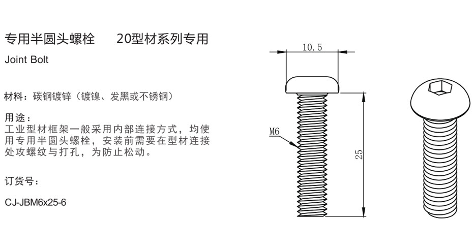 专用半圆头螺栓 20型材系列专用